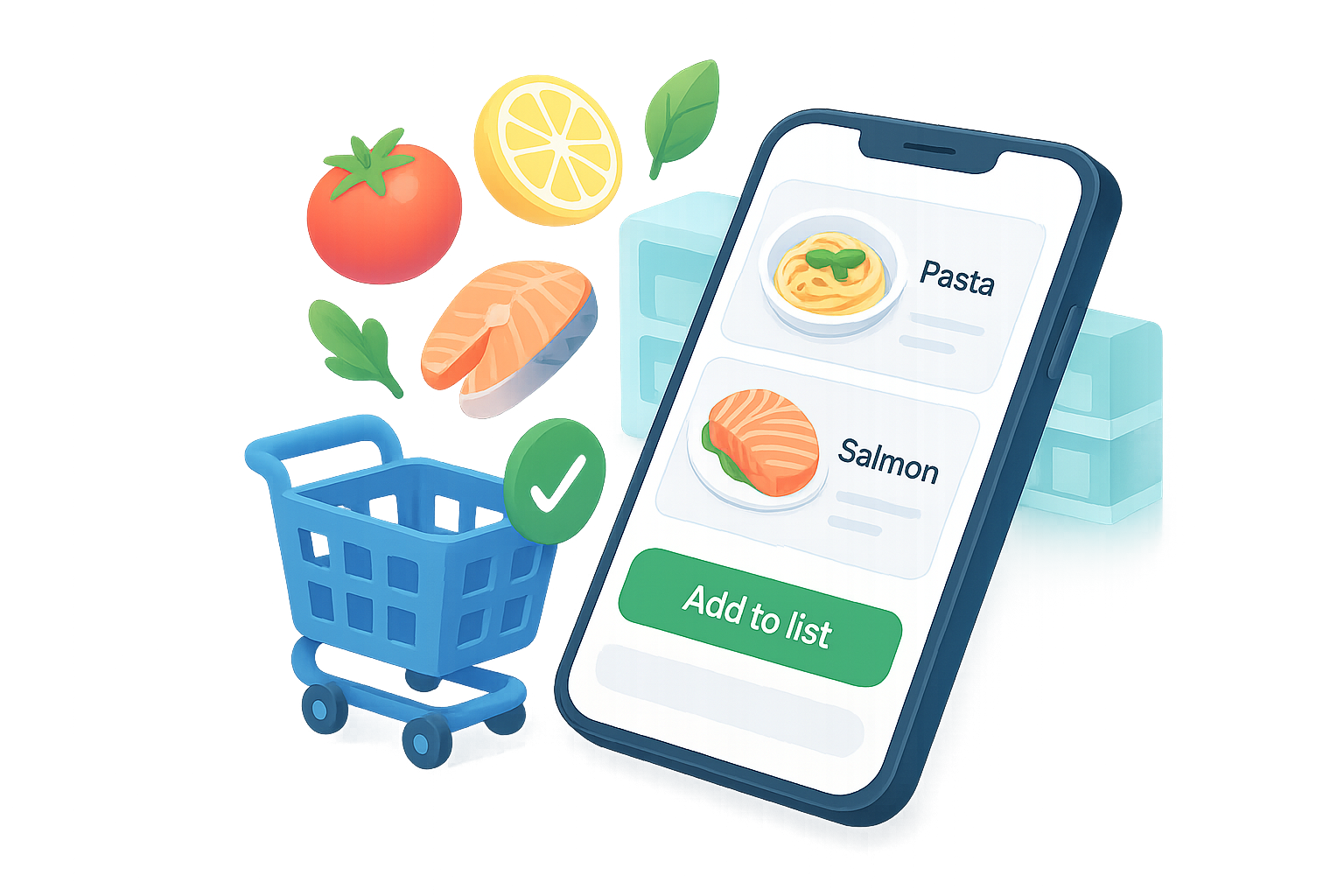 Kies een recept en ontbang eenvoudig een persoonlijk boodschappenlijstje met actuele prijzen.